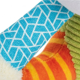 Avec ses couleurs vives et les différentes textures de tissu, cette douce peluche est le compagnon idéales pour les chiots et les chiens de petite taille