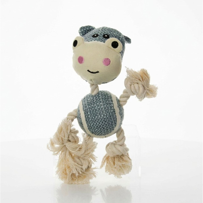 Peluche Hippo avec corps balle de tennis et corde naturelle