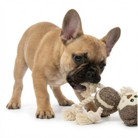 Peluche Singe avec corps balle de tennis et corde naturelle