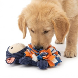 - Insérez des petites friandises entre les bouts de tissu pour que le chien les cherche