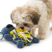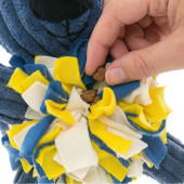 - Insérez des petites friandises entre les bouts de tissu pour que le chien les cherche