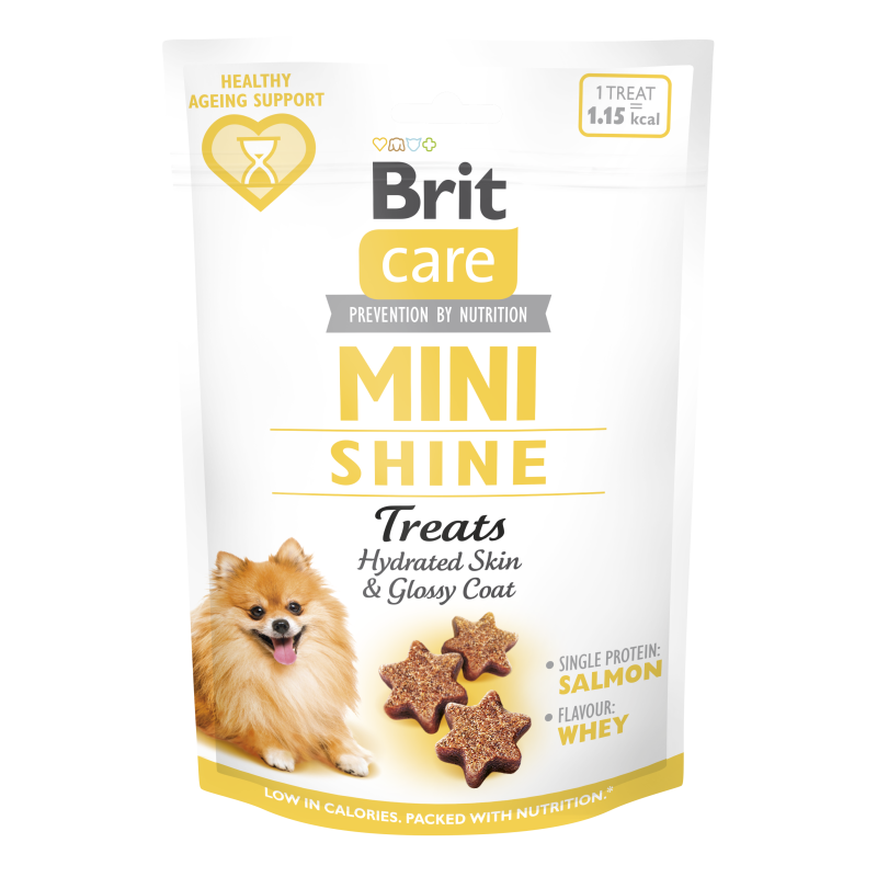 Friandises composées de 35 % de protéine de saumon, associée à 19 % de pois jaunes, 14 % de glycérol d’origine végétale, 8 % de lentilles rouges et 6 % de potiron. Elle contient également 5 % d’huile de saumon, 4 % de collagène, 3 % de mélasse, 2 % de lactosérum, ainsi que 1,5 % de fibre de pois et 1 % de graines de lin. La formule est complétée par de la farine de pois, des acides fulviques (0,5 %), de l’acide hyaluronique (0,045 %), de l’extrait de melon cantaloup (0,01 %) et des bactéries inactivées (Lactobacillus helveticus HA – 122, 15×10⁹ cellules/kg).