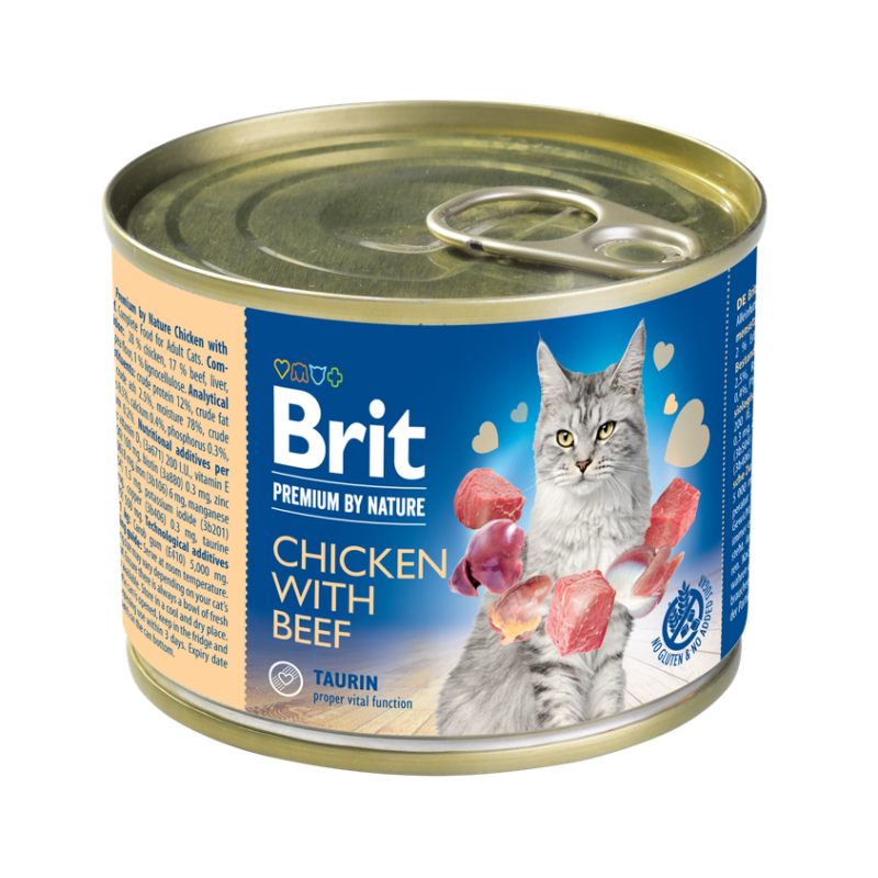 Une pâté pour chat à la viande de poulet et au bœuf.
